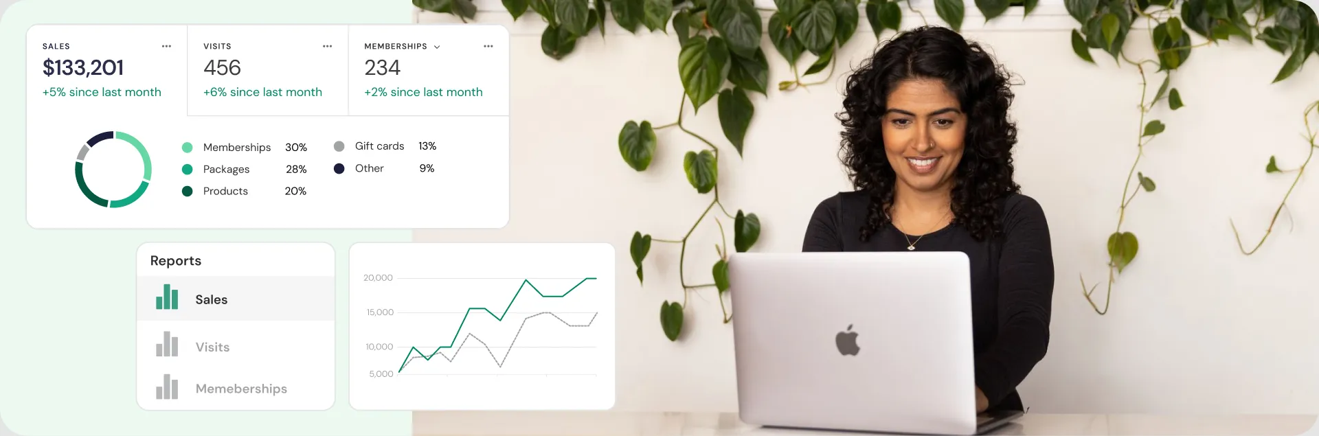 - Track revenue, bookings, and client retention with detailed performance reports