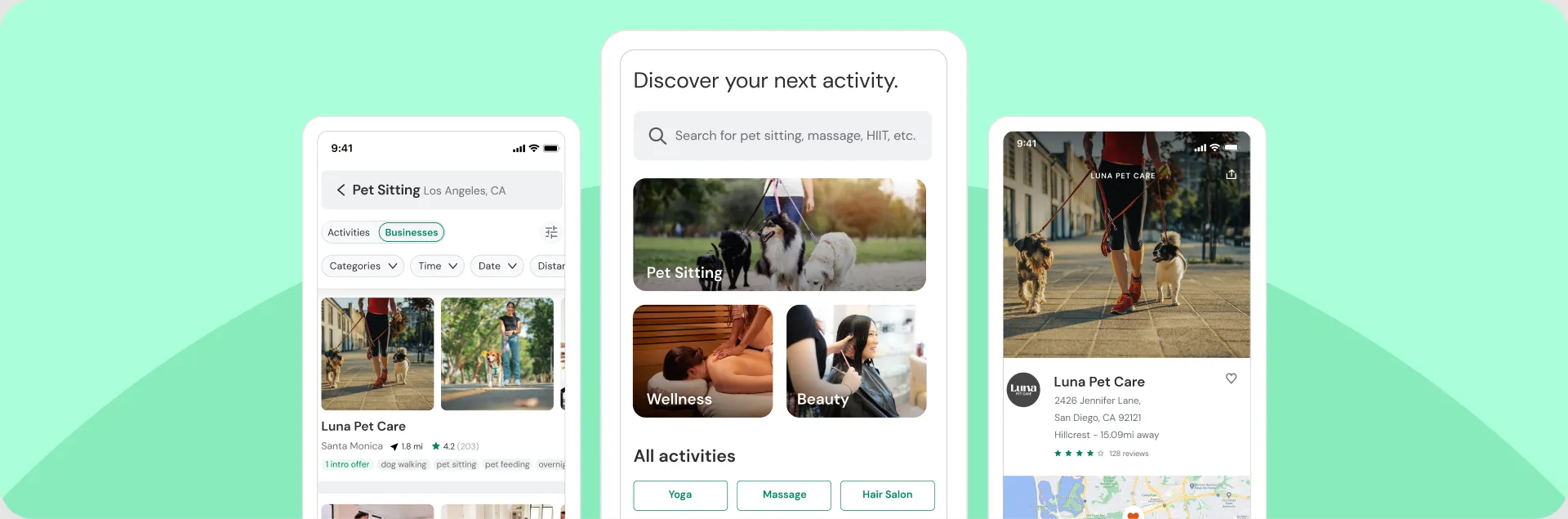 For pet sitting businesses, the Mindbody app helps increase visibility, attract new clients, and fill open appointment slots. Client reviews and ratings on the app also pet sitting businesses build trust and credibility with clients. With millions of users engaging on the platform and thousands of consumers discovering new businesses each month, the Mindbody app serves as a powerful growth channel for pet sitting businesses.
